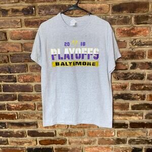 Gildan Baltimore Ravens Gray Graphic 2018 Playoffs T-Shirt Men's Size Medium