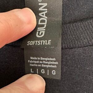 Gildan t-shirt in black with a striking yellow graphic design. Worn once. Excellent condition.