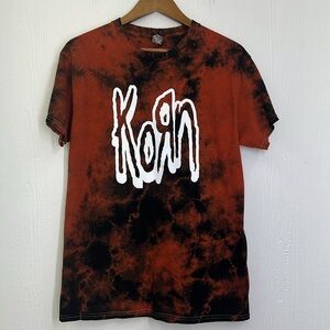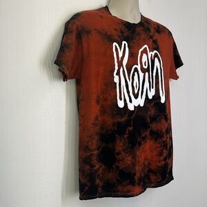 Gildan - Burnt Orange And Black Tye Dye Korn Band Graphic Short Sleeve T Shirt Size M