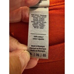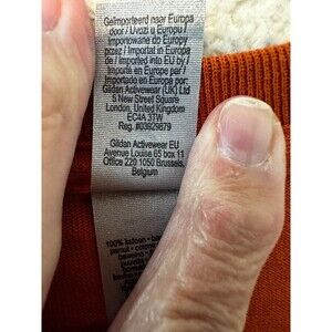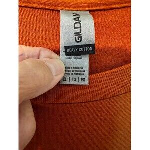 Embrace your team spirit with the Gildan Burnt Orange Texas Longhorns T-Shirt. This vibrant top is an ideal pick for game day or casual wear. It features a classic crew neck and short sleeves, offering a comfortable regular fit in size XL. Made from soft, 100% cotton, this knit t-shirt is machine washable for easy care. The shirt is a solid burnt orange hue, accented with the iconic Texas Longhorns pumpkin graphic that adds a touch of college pride. It's a versatile piece that can be worn throughout all seasons. Whether you're hitting the streets or cheering from the stands, this Gildan Heavy Cotton tee is a dependable addition to your wardrobe.