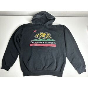Gildan California Republic Bear Hoodie Pullover Sweatshirt Black Sz M See Notes