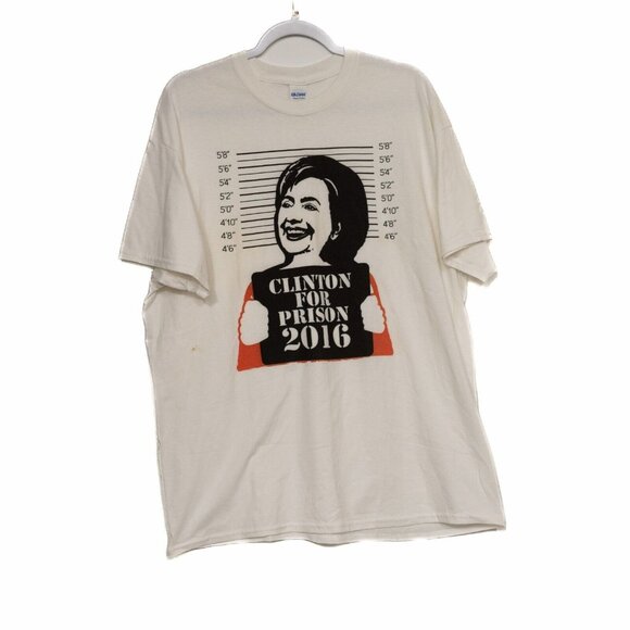 Gildan Clinton For Prison 2016 Mens White T-Shirt Short Sleeve Crew Neck Size XL
