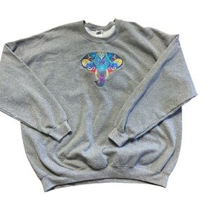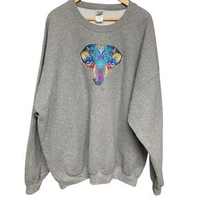 Gildan Elephant Head Mosaic Crewneck Sweatshirt Unisex Size 3X Grey Embroidered
