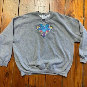 Gildan Elephant Head Mosaic Crewneck Sweatshirt Size 3XL Grey Embroidered Casual