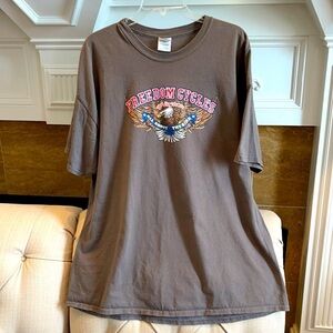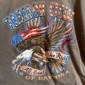 S: Freedom Cycles of Daytona All about the ride Graphic T-Shirt Brownish Gray with Eagle Mens Sz 2XL