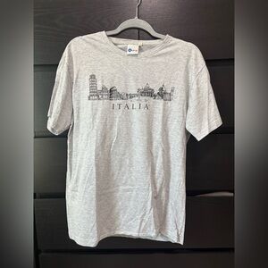 Stylish gray tee with Italia graphic. Perfect for casual wear.