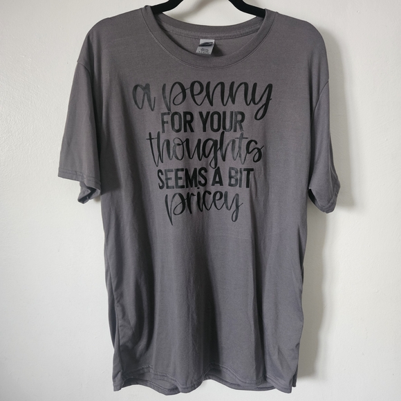 Brand new Handmade Gray short sleeve tee with stylish black lettering. Perfect for casual wear.