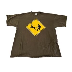 Gildan Gray/Yellow Man VS Deer Short Sleeve T-Shirt Mens Size XXL