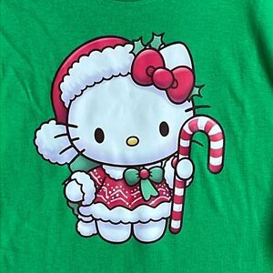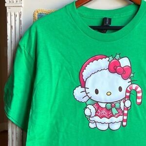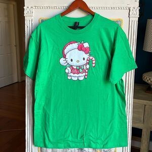 Gildan Green Graphic T-Shirt with Christmas Hello Kitty NWOT