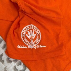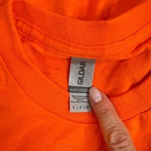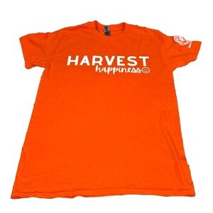 The Gildan Harvest Happiness T-Shirt in Orange is a unisex size small t-shirt perfect for women. Made from comfortable cotton material, this basic t-shirt features a crew neckline and is ideal for casual wear. The vibrant orange color adds a fun and cheerful touch to any outfit, making it a great addition to your wardrobe for a pop of color. Shirt is in excellent, pre-loved condition!