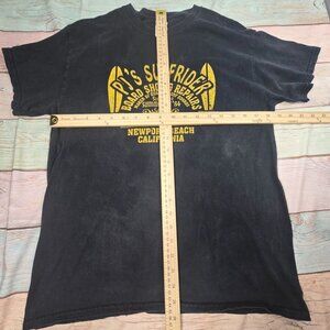 This tee tells a story of sun-soaked days on Newport Beach, capturing the essence of PJ's Surfrider shop since the summer of '84. The bold yellow graphic against the worn black cotton feels like a nostalgic embrace, perfect for reminiscing about waves, boards, and long-lasting memories.