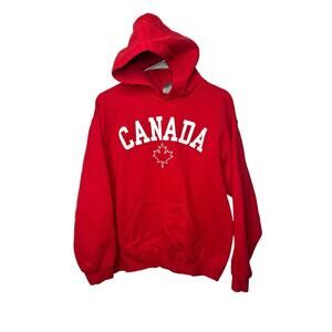 Gildan Heavy Blend Canadian Hoodie Red Medium Maple Leaf Logo