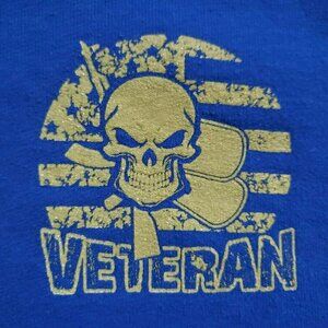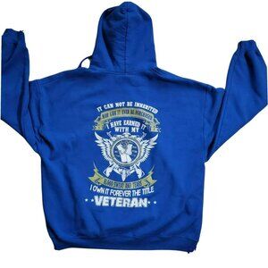 Gildan Heavy Blend Veteran Military Hoodie Sweatshirt Blue Vintage Skull Earned