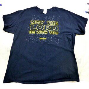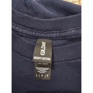 Set of two Gildan Heavy Cotton short-sleeve t-shirts in size Large, worn once just for a quick photo. Navy blue with a bold red & white "Yay Forced Family Fun" Christmas graphic featuring candy canes, snowflakes, and bells.