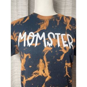 🌸 Gildan Heavy Cotton "Momster" T Shirt Black with Bleach Tie Dye Halloween