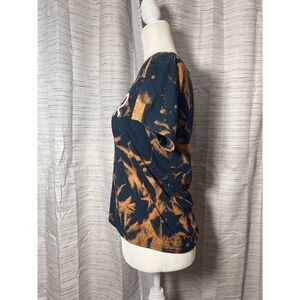 The base of the t-shirt is a classic black, providing a versatile backdrop that pairs well with any casual or trendy ensemble. To add an extra dimension to the design, we've incorporated a bleach tie-dye effect that elegantly marbles the fabric, creating a one-of-a-kind, edgy appearance. The tie-dye pattern gives the shirt a fashionable and slightly grunge-inspired look, making it a standout piece in your wardrobe.