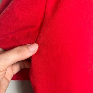 in good condition. cracks in graphic. tiny hole. if flaws, loose threads.