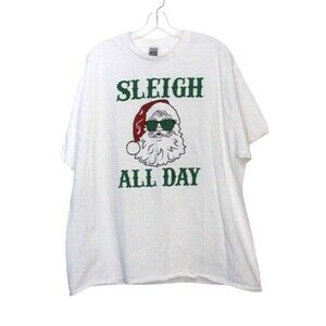 Gildan Heavyweight white cotton t shirt. Santa. Sleigh All Day. 100% cotton. Size 2XL. Item is in great condition, no rips, tears, holes or stains.