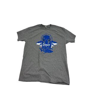Gildan Mens L Gray Venice FL Shark Graphic Short Sleeve Crew Neck T Shirt