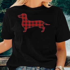 Gildan Black and Red Plaid Wiener Dog Tee in 100% Cotton. Excellent Condition.
