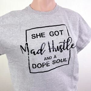 Gildan She Got Mad Hustle And A Dope Soul Crewneck Graphic T-Shirt Gray size M