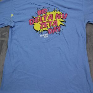 Gildan Shirt Mens M Blue Long Sleeve Graphic Print Activewear Pullover T Shirt