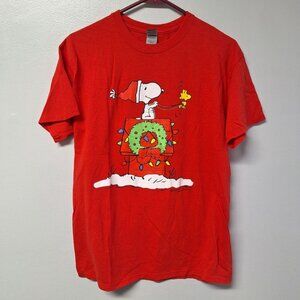 Gildan Snoopy Shirt Christmas Red Wreath Woodstock Dog Peanuts Cartoon Medium