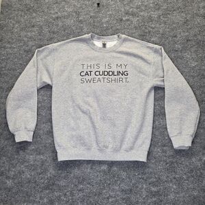 Gildan Sweatshirt Medium Gray Cat Cuddling Crewneck Heavy Blend Pullover