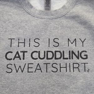 Features large front graphic text: "THIS IS MY CAT CUDDLING SWEATSHIRT." in black print