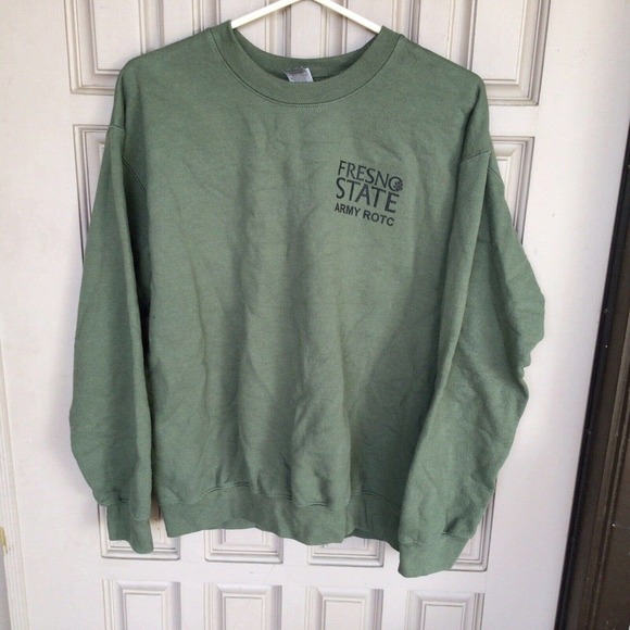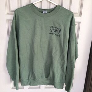Gildan Sweatshirt SzM Unisex Fresno State Army ROTC Green Long Sleeve Used Good