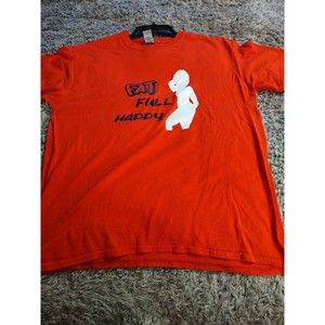 Gildan T Shirt Size L Red Short Sleeve Fat Full Happy Heavy Cotton