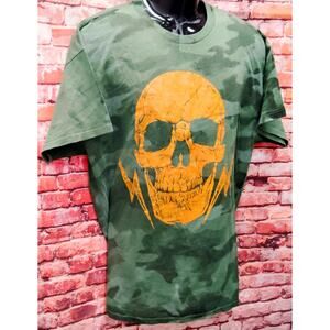 Gildan T-Shirt Men's XL Green Skull Flash Thunder Graphic Short Sleeve Pullover