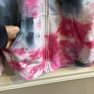 Gildan Heavy Blend Tie Dye Zip Up Sweatshirt Hoodie. Front pockets. Hood with drawstring. 50% cotton/50% polyester. Size Medium