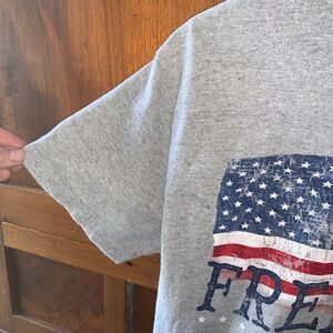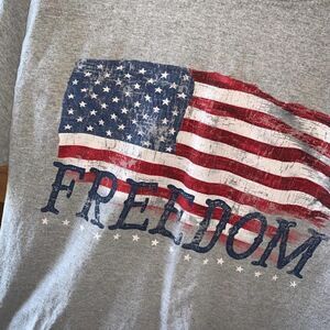 Gildan T-shirt short sleeve holiday, Fourth of July, America, flag, freedom, size medium. Measurements are done flat and are approximate.