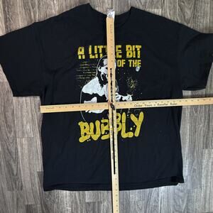 This is a men’s size XL graphic tee from the brand Gildan Ultra Cotton featuring the “A Little Bit of the Bubbly” catchphrase and image of Chris Jericho from AEW wrestling. Made in Nicaragua. Classic fit, heavyweight cotton? Black base with bold yellow and white print. Great for wrestling fans, AEW collectors, graphic tee wardrobes or casual street styling. Tags show “Gildan Ultra Cotton — Made in Nicaragua.” The shirt has been cared for – no obvious stains, rips or heavy wear visible. Your purchase will arrive folded neatly and in a poly bag for safe shipping.
