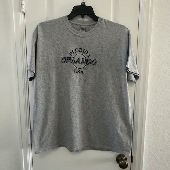 Gildan Ultra Cotton Gray T-Shirt Florida Orlando USA Embroidered Design XL 80% C