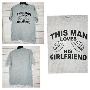 Gildan Ultra Cotton This Man Loves His Girlfriend Gray T-Shirt in Medium, featuring a bold romantic message for couples.