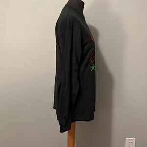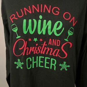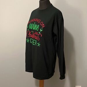 Gildan Women Red and Green Crewneck Long Sleeve Running on Wine & Christmas Cheer Top M