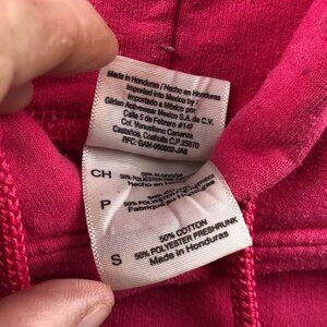 Gildan Womens Hoodie Sweatshirt Small Pullover Graphic Print Pink Drawstring