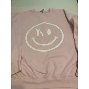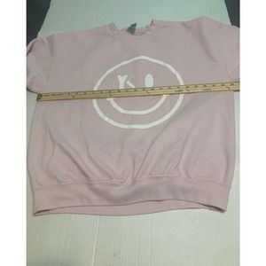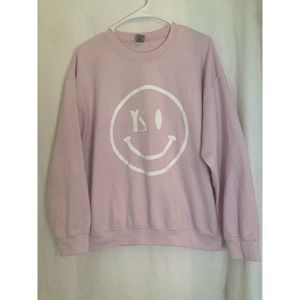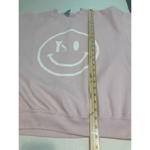 Gildan Womens Sweatshirt Smiley Face Pink Size Large