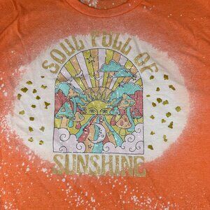 Gildan Womens XL Soul Full of Sunshine Orange Bleached Short Sleeve Graphic Tee