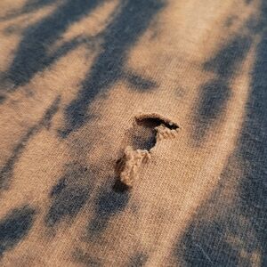 Awesome piece, custom acid-washed. There is a small hole in the front of the shirt, shown in photos. Please reach out with questions.