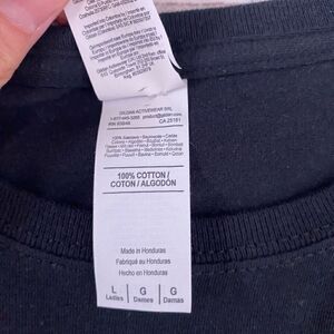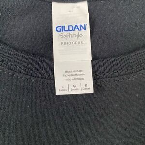 Gildan softstyle What the Elf? Graphic print shortsleeve Crewneck black top sz L