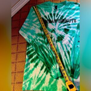Gildan tie dye long sleeved T-shirt with SUNDAE DONUTS logo on front NWOT L