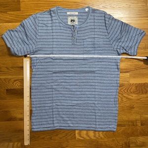 Gilded Age Inc - Henley T-shirt - Light Blue / Brown Stripes - Size Small