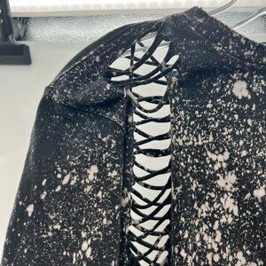 Gilded Intent Distressed Top Black/Gray Women's Size Small Tie Dye Short Sleeve