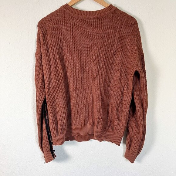 Gilded Intent Drop Shoulder Knit Sweater Rust Brown Sleeve Detail Size Small