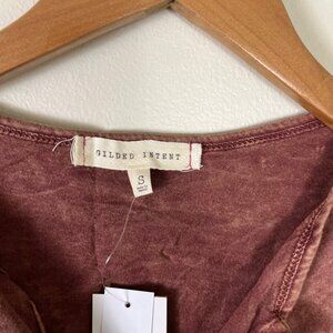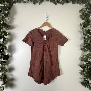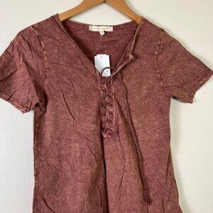 Gilded Intent Front Lace Up V-Neck Short Sleeve Shirt Rustic NWT Women’s Size S