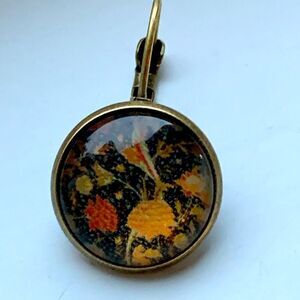 TAGS: floral paper earrings, chiyogami jewelry, glass cabochon dangle, asian flair jewelry, boho leverback earrings, japanese print earrings, artisan handmade gift,