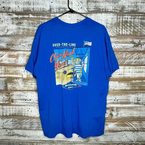 Gilden men's heavy cotton T-shirt. In great condition. No stains or tears noted. 50% cotton 50% polyester. "Over the line" San Diego.